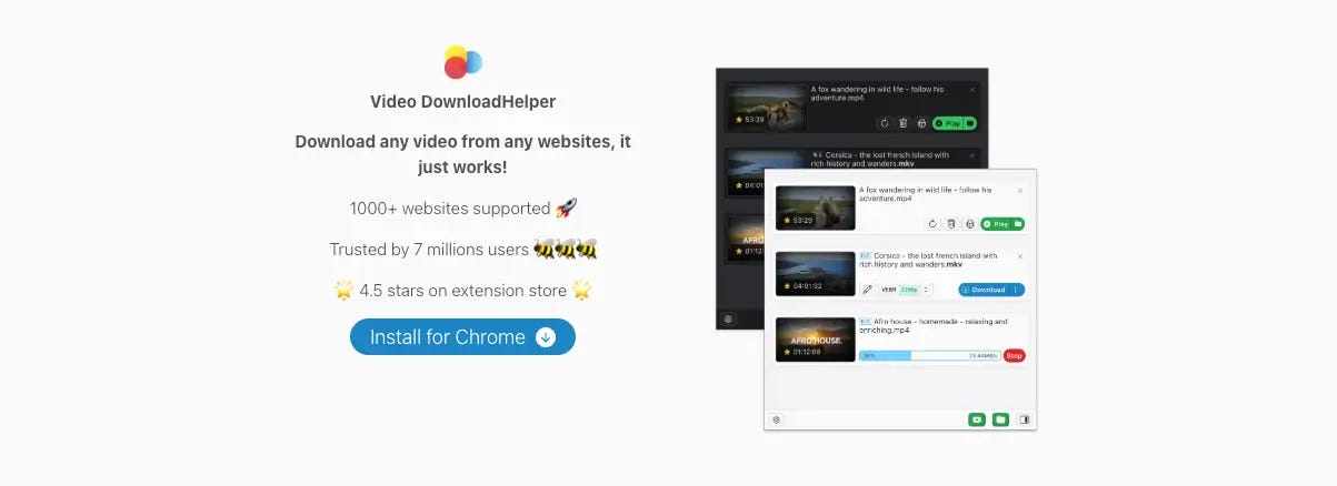 Description: A popular extension for browsers like Chrome and Firefox. It automatically detects videos as you browse, allowing downloads with a few clicks.